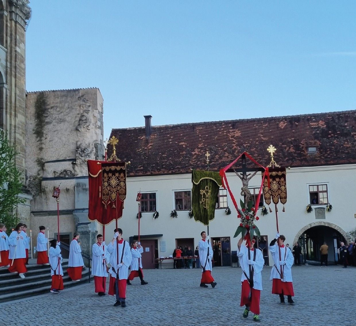 Am Freitag nach Christi Himmelfahrt beginnt die Blutrittprozession an der Basilika St. Martin und Oswald