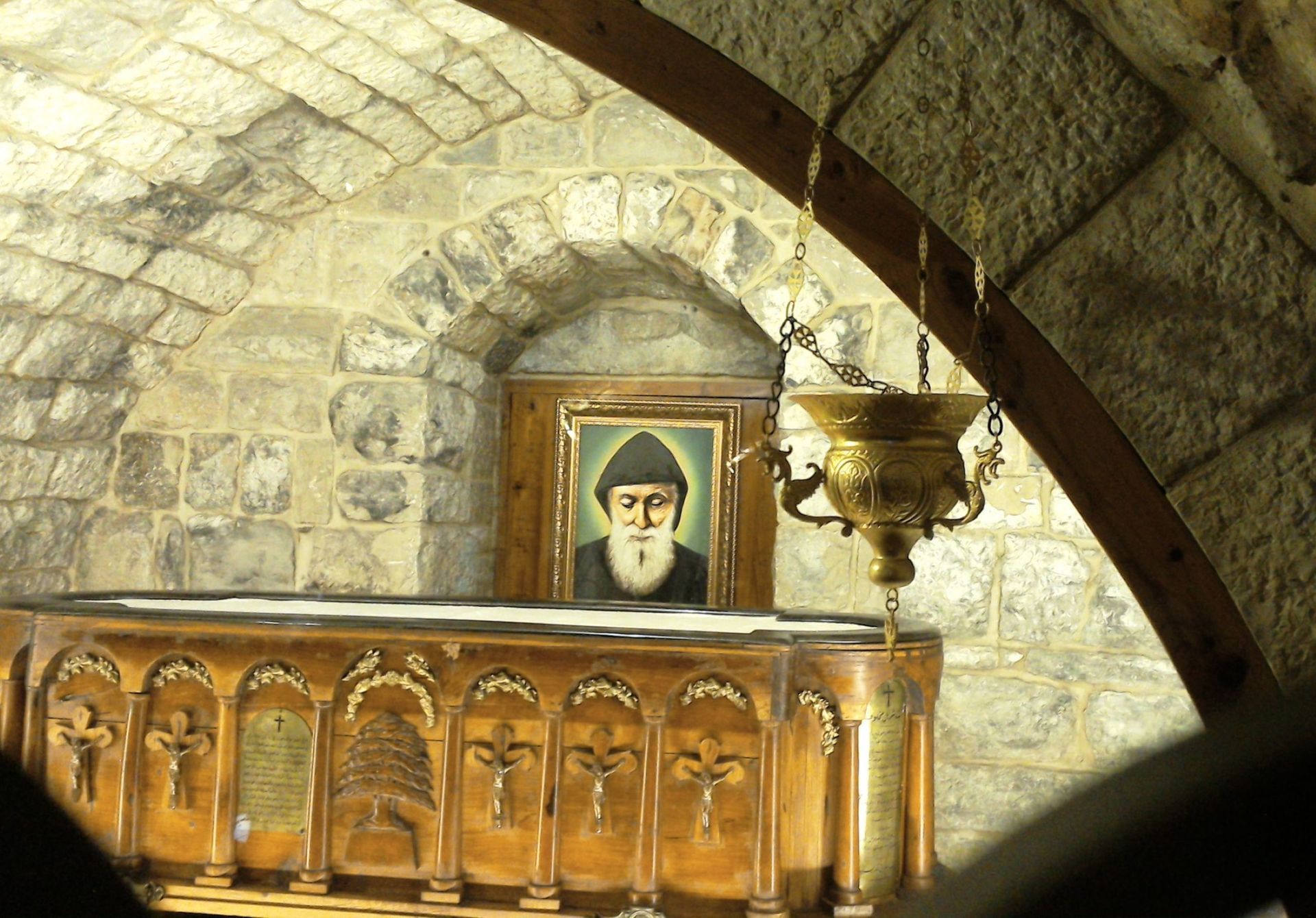 Schrein & Portrait | Heiliger Charbel Makhlouf | Grotte in der Klosterkirche | Annaya | Libanon