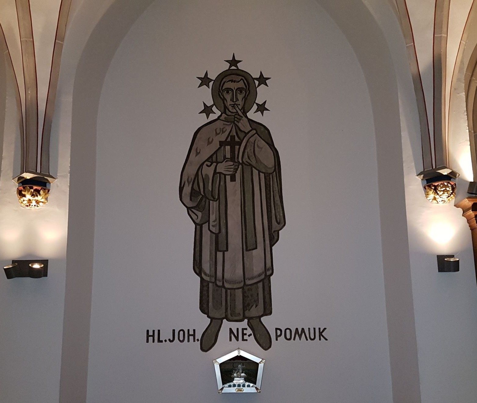 Hl. Johannes Nepomuk | Wandgemälde über Reliquiar an der Beichtkapelle |